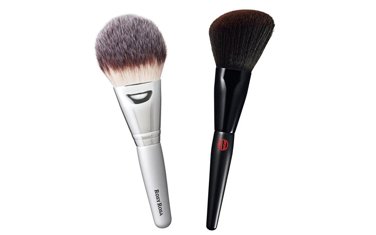 大きめなブラシは一度に塗布できる範囲が広く、ふんわり軽やかに粉をフィットさせられます。小さめのブラシは小回りが利き細かい部分に使え、メイク直しにもぴったり。塗布するパーツに合わせて、両方使いするのもおすすめです。