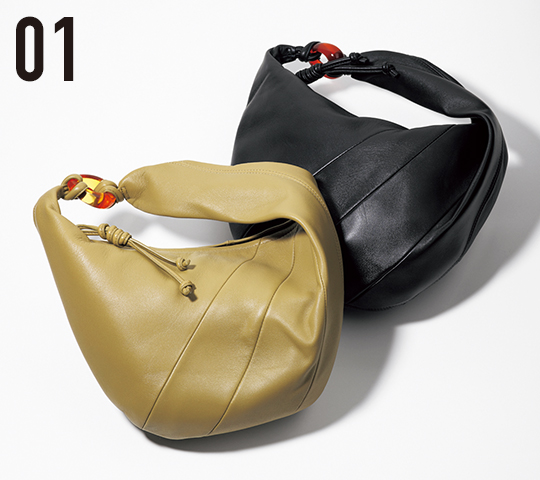 左から/Mini fling twist bag Avocado・同 Black[縦21×横32×マチ8cm]¥28,600