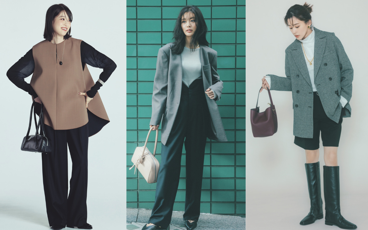 【秋トレンド】「バッグは横長フォルム」「テーラードジャケットは大きめで」など4つのキーワードをチェック!