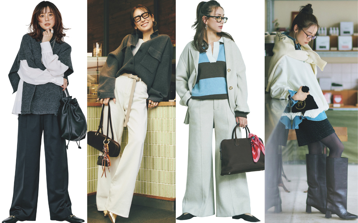 今回は、冬の着こなしに旬感を添えるパンツコーデを紹介しました。きれい色や華やぎトップスなど、甘さのあるアイテムも、ベーシックカラーのパンツ合わせなら等身大に引き寄せてくれます。ファッションのカジュアル化が進む中でより愛されるパンツをうまく味方につけて、ハンサム×女性らしさの絶妙な掛け合わせを楽しんでみてください。
