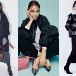 ダークトーンで強い存在感を放つ黒コートは、1枚あればどんなシーンにもきちんと感をプラスできる。カラーニット×サテンスカートのスイートな装いに、凝ったデザインのスニーカーでパンチを効かせると、とたんに今どきのスピード感がアップ。