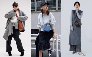 濃淡とテクスチャーの多彩な表情で魅せるグレーコーデは、ジャケパン効果でハンサムな印象に。かっこよさを残しつつほんのりとモードな女っぷりがほしいなら、バッグで赤を取り入れてみて。