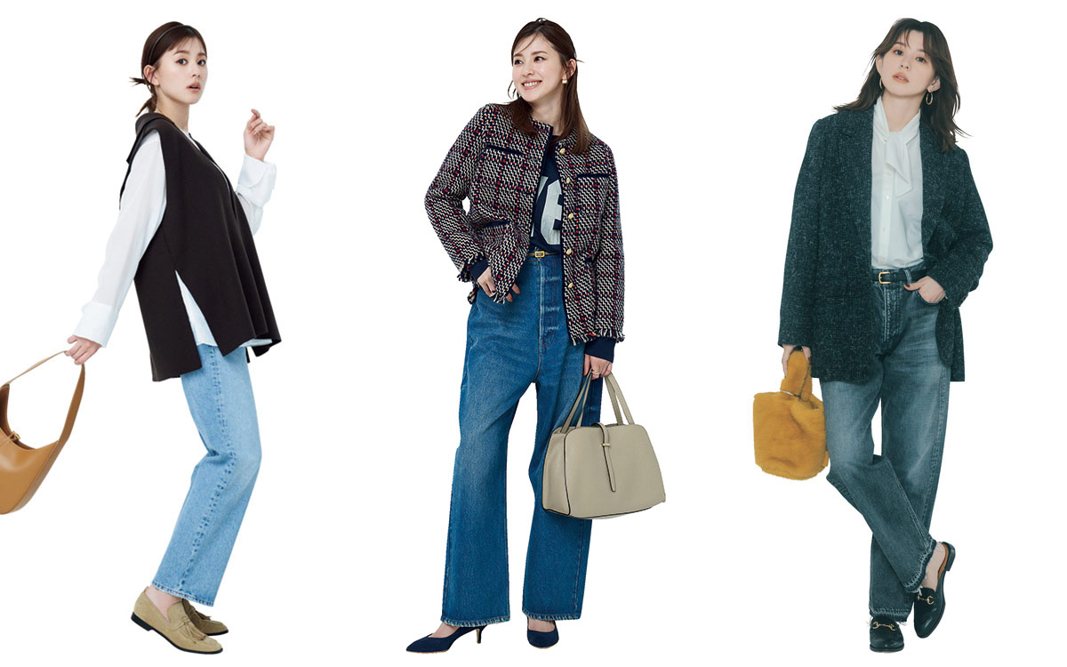 デニムコーデを冬仕様にアップデートした着こなしを紹介しました。近年デニムシーンもカジュアルをそのまま楽しむフェーズから、女っぽさを兼ね備えた着こなしが主流に。親しみのあるブルー、リッチな黒、きれい色をやさしく包むニュアンスカラーなど、シーンに合わせてカラーも味方につけて、アクティブなデニムを新鮮な着こなしで楽しんでくださいね。