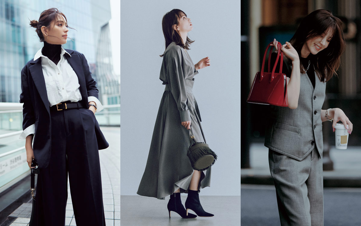 今や、働く私たちの定番となったセットアップも日々進化中。軽アウター×ボトムのセットは秋ならではのお洒落の楽しみ方!