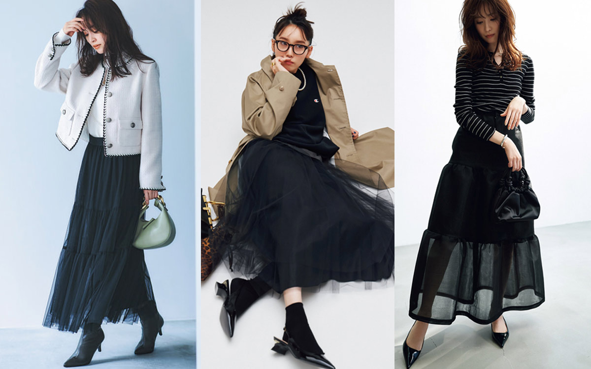 黒チュールスカートで華やか&鮮度の高い着こなしを叶えて