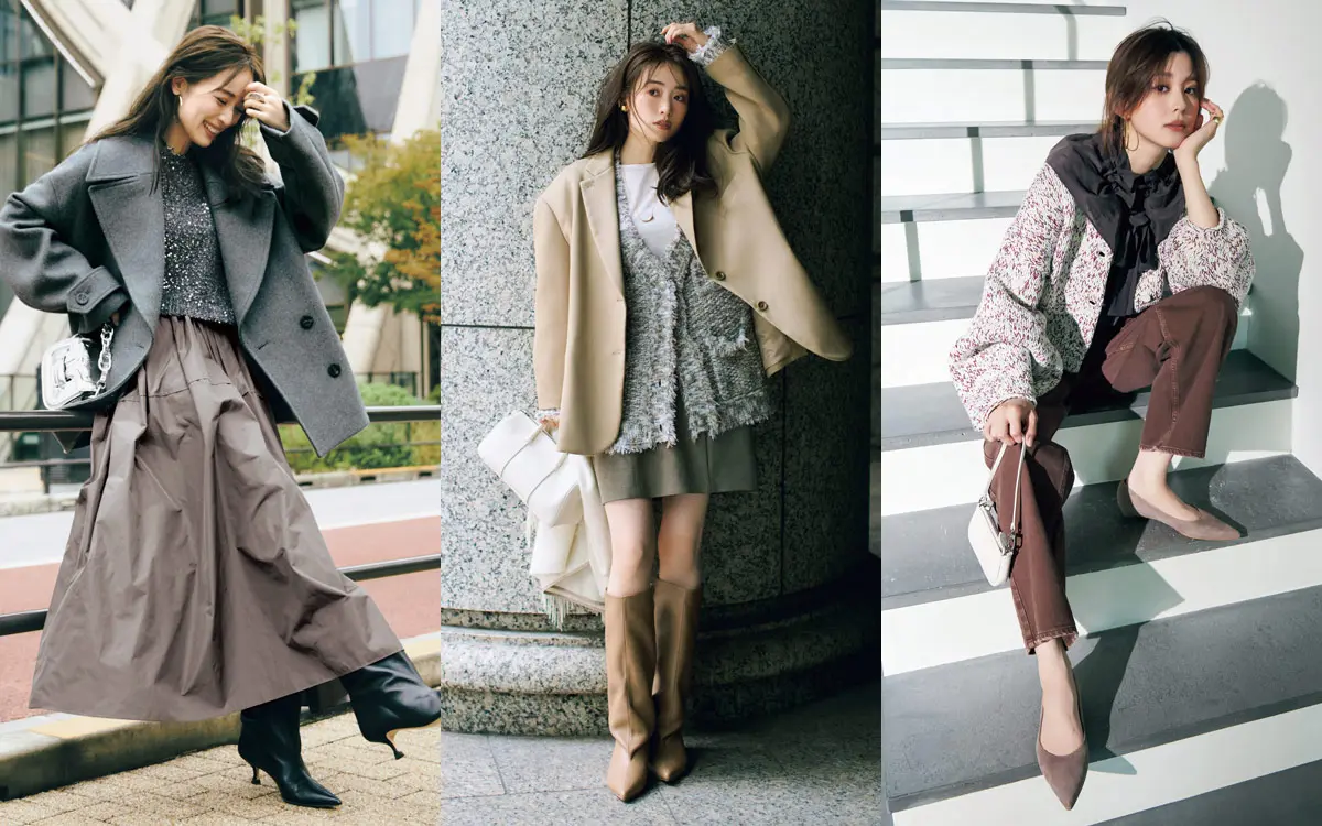 この冬は素材感のギャップがおしゃれ!「あったかニット×さらっと質感のスカート」コーデ3選
