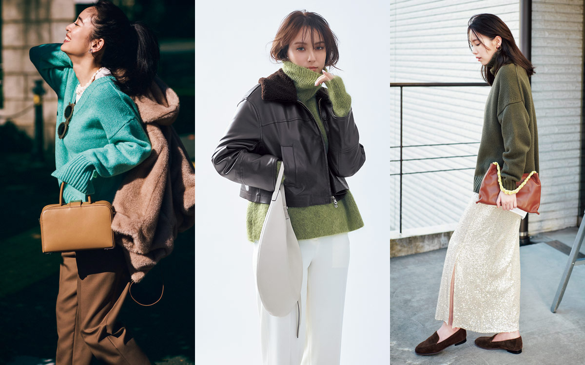 真冬に着る「グリーンアイテム」はまろやかなトーンで大人っぽく