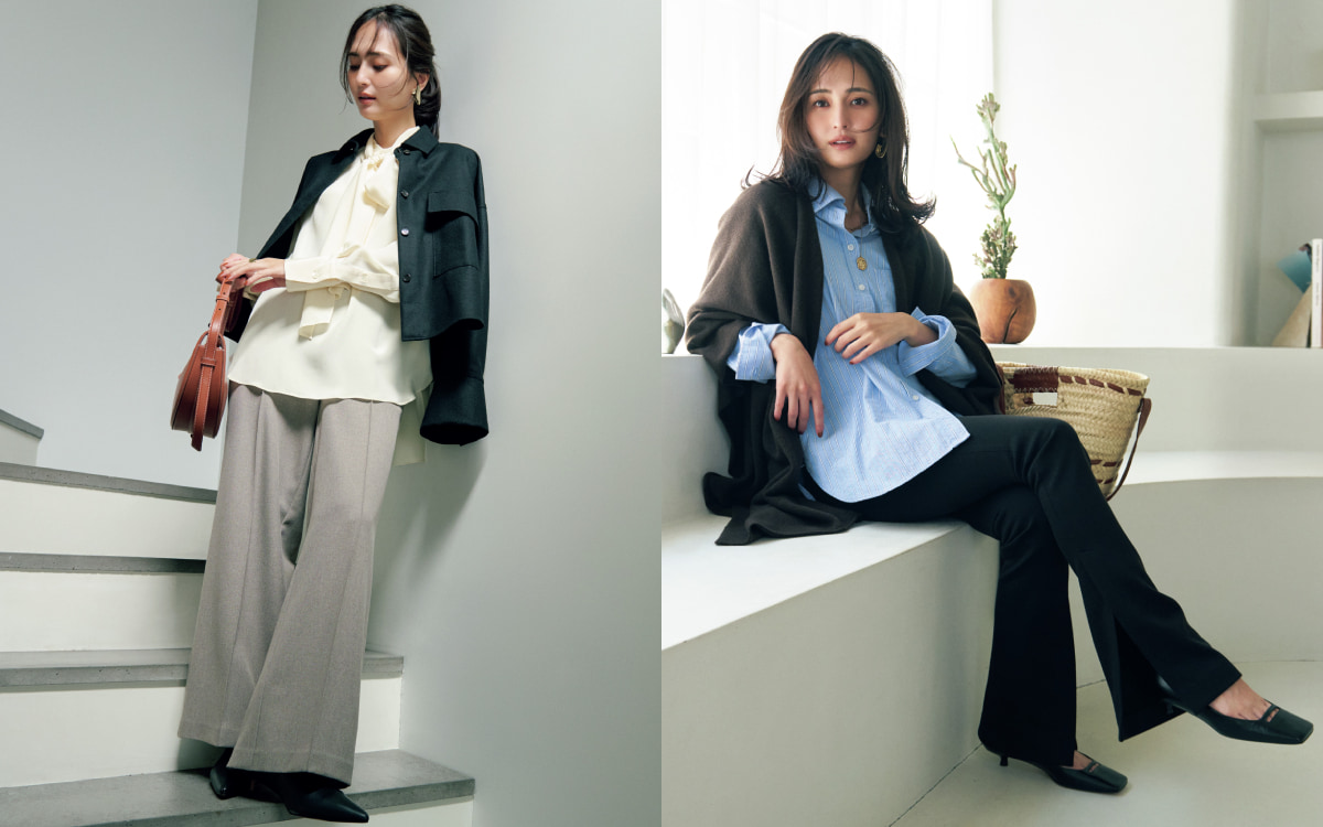 脚のラインを美しく見せてくれるフレアパンツは、大人のワードローブに欠かせない名品。