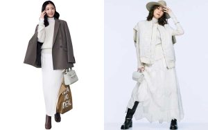 コートやローゲージのニットをホワイトでまとめて、ふだんより華やかかつ愛嬌たっぷりに。心浮き立つホリデーシーズンを盛り上げて。