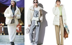 アクティブながらきれいめな要素香るコーデ。モノトーン配色でも寒い時季の街に映え、オフ白がフェミニンで爽やか。