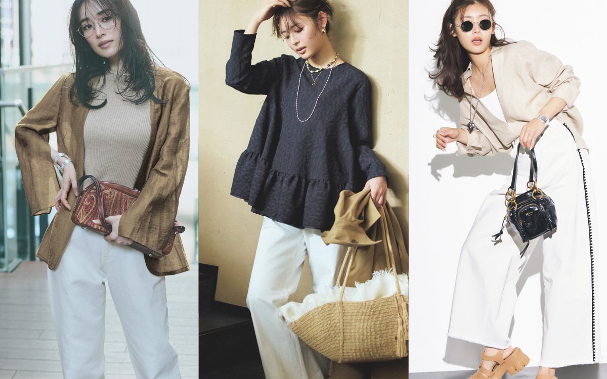 ボトムに取り入れるだけで、フレッシュで美しい着こなしを叶える白パンツ。春夏に出番が増える、今っぽいデコラティブなトップスも大人っぽくきれいめに受け止めてくれるので、この時季らしい洗練された爽やかさがほしいときにはぜひ白パンツを選んでみて。