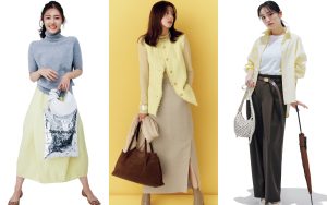 ほっこり見え回避で着たいイエロー。肌見せやシックな色合わせなら、女らしくまとまる。