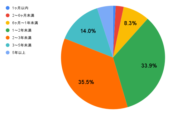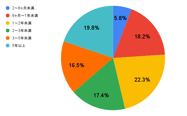 続いて理想の交際期間についての乖離があるのかどうかを調べるべく、同じ女性たちに「結婚するまでの理想の交際期間を教えてください」と聞いたことろ、結果は以下のようになりました。