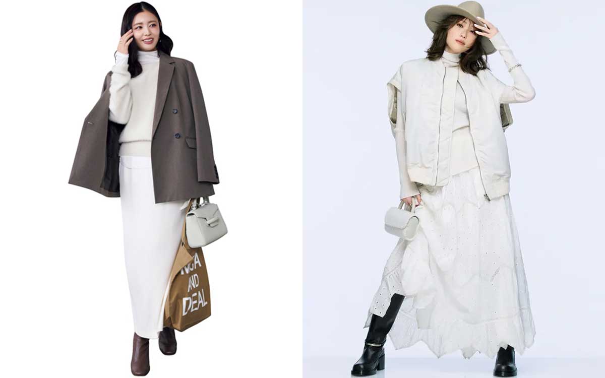 【レイヤード】で白ニットに奥行きを