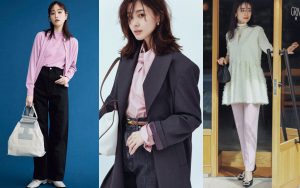 紫特有の甘さを抑えたいときは少しトーンの低い紫やパキッとした色味の紫を、ダークカラーと合わせたりパンツ、カジュアル小物と一緒に着こなすのもキレ味よくまとめるコツ。上品さを全面に出したいときは淡い紫を選び、白やベージュといった全身のトーンもやわらかい配色にすると、女性らしくまとまります。