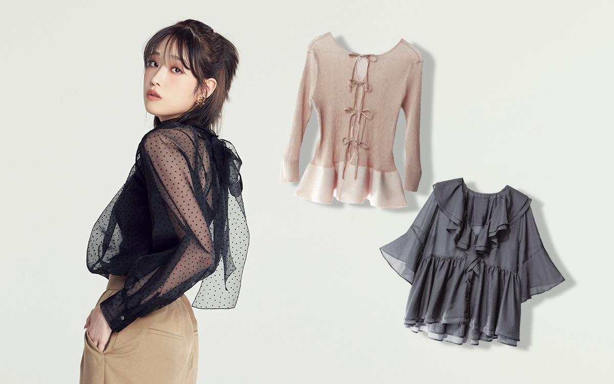 透け×ツヤの組み合わせは甘くなりすぎないパンツと