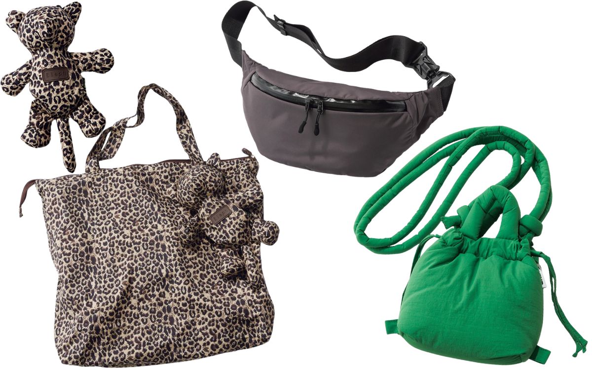 タイ発ブランドの、日本限定品猫チャームの中に収納できるエコバッグ。ほか、チェリー/グレー、ドット/ネイビー、クローバー/マルチカラーと、どれもキャッチーな柄! 環境に配慮したリサイクルペットボトル素材を使用。バッグ¥6,930(Eleph JAPAN〈Eleph〉)