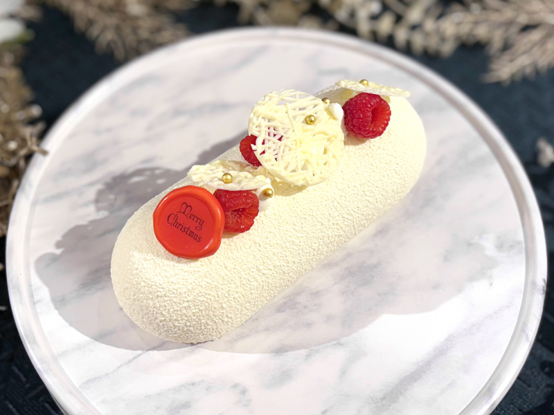 新作二つ目は、雪のように軽やかな「ノエルブラン」。トッピングされたラズベリーやホワイトチョコのアクセントが華やかな「ノエルブラン」は、口に含んだ瞬間に甘酸っぱさとまろやかさが溶け合います。土台のビスキュイの上には、苺のムース、苺のコンポート、マスカルポーネとホワイトチョコレートのムースと、各層の優美な調和が光る苺の香りが広がるふんわり食感のケーキです。家族や親しい友だちとの、パーティーにピッタリのサイズ感も嬉しい♡