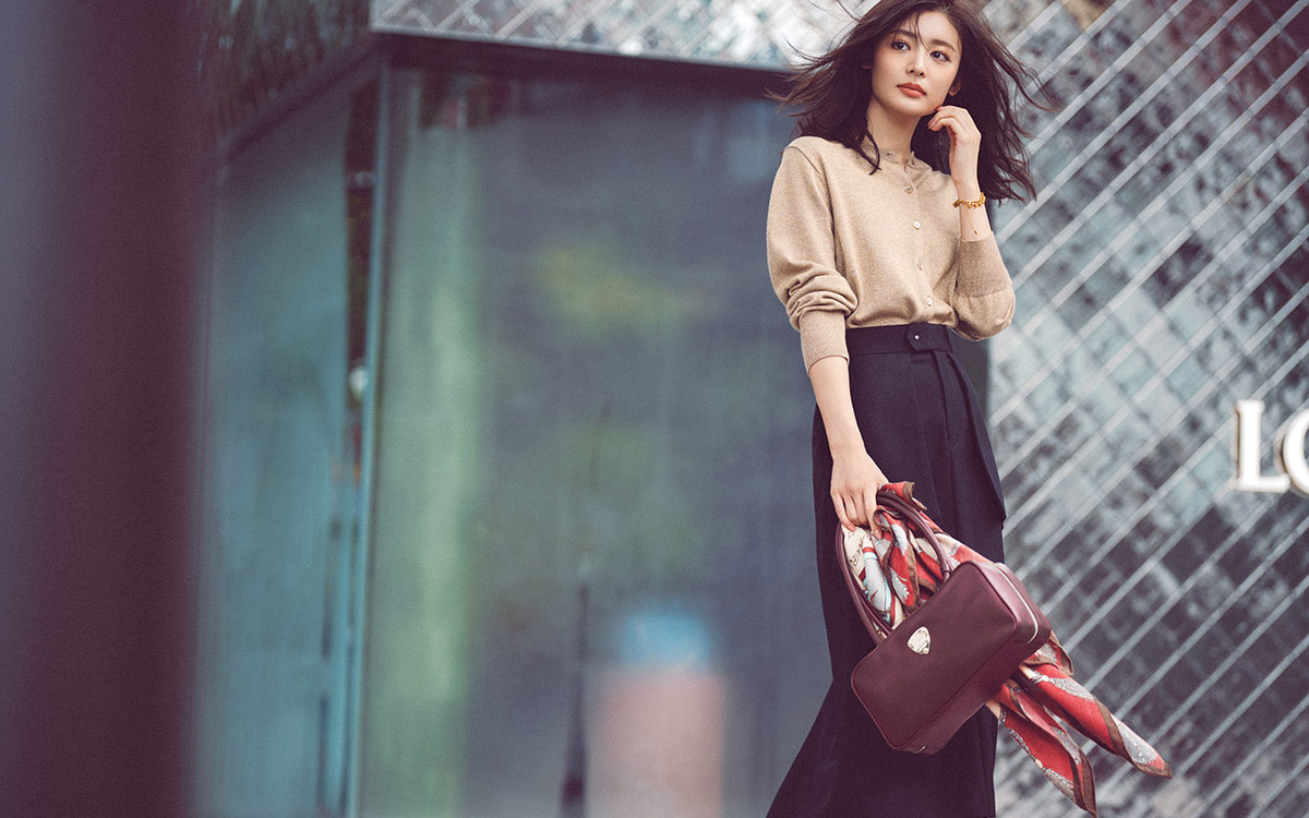 ベーシックなワンツーコーデもぐっと華やぐ! かっちりしていて品がある、それでいて今どき。どんなシーンでも〝間違いのない〟ボストンバッグは働く女性の強い味方。