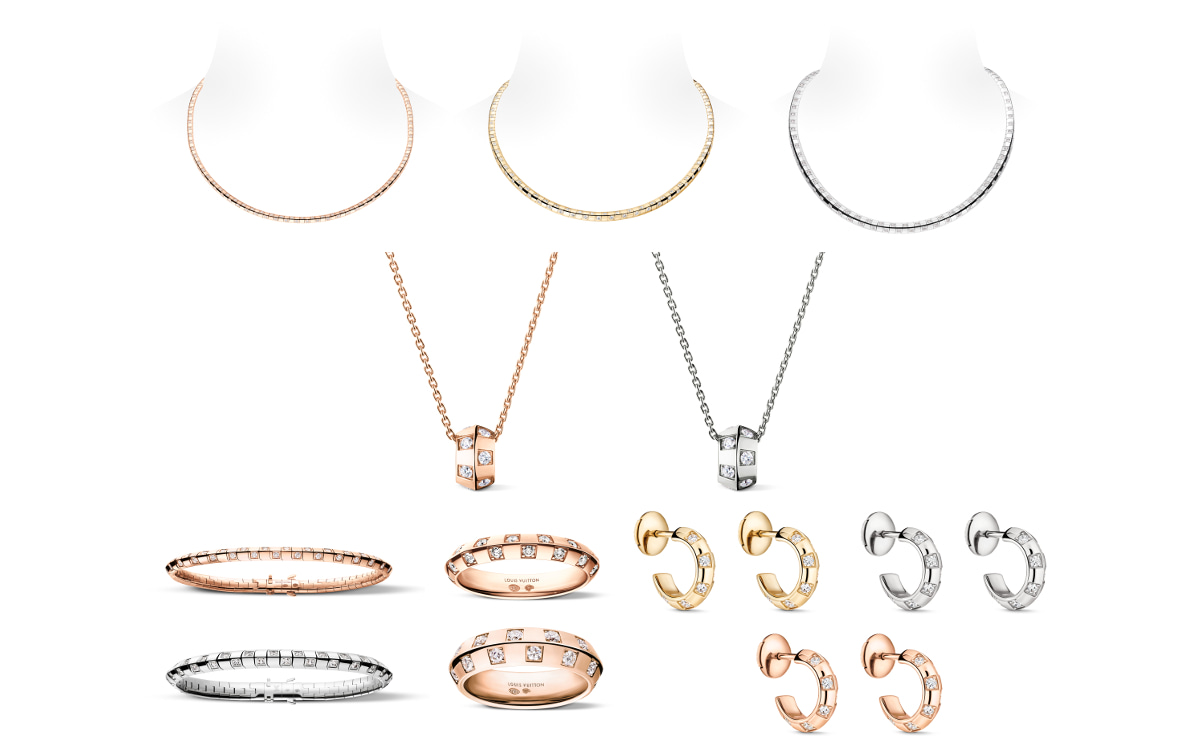 ダミエ・パターンの独特なフォルムをゴールドのスクエアとダイヤモンドでグラフィカルに表現した「ル ダミエ ドゥ ルイ・ヴィトン」。センシュアルで動きを感じさせるデザインで、まさにセカンドスキンのような着け心地が魅力のジュエリーコレクションです。