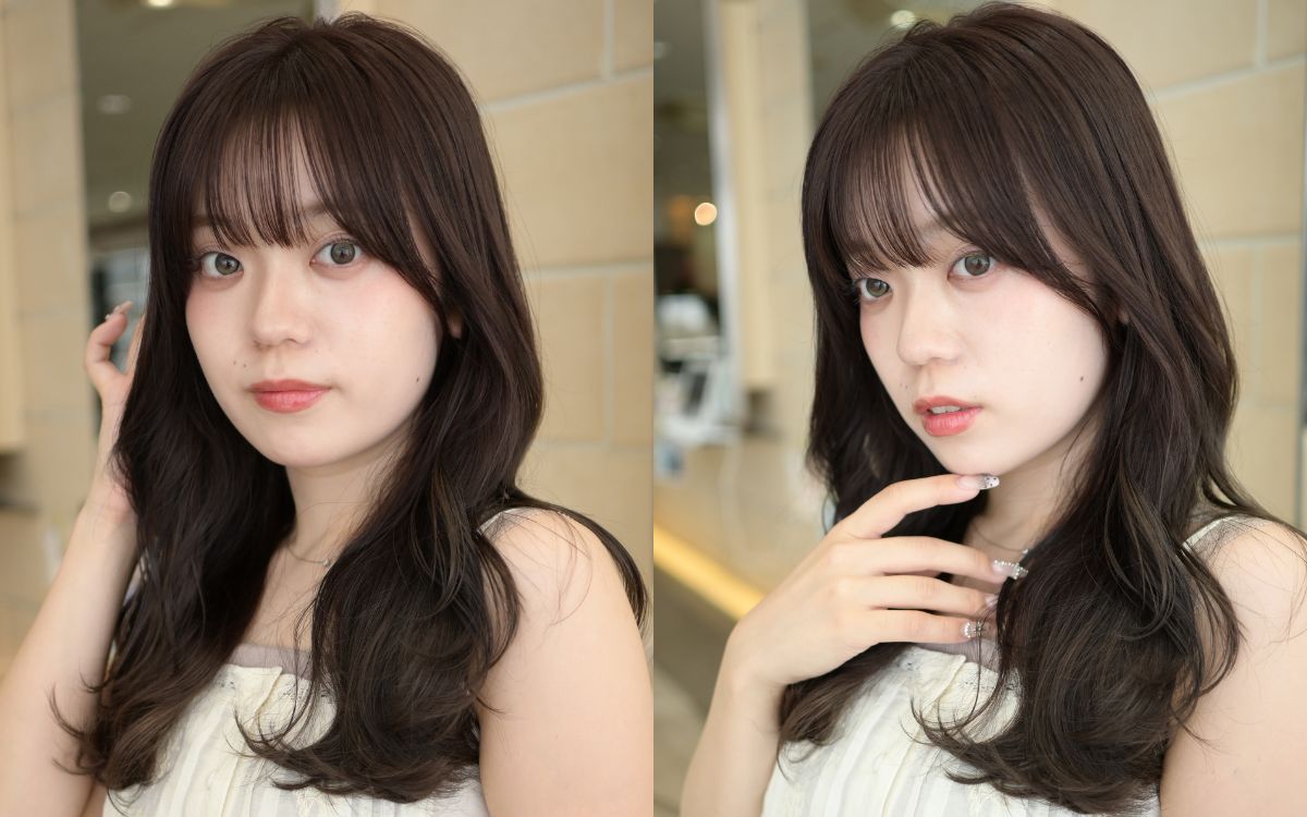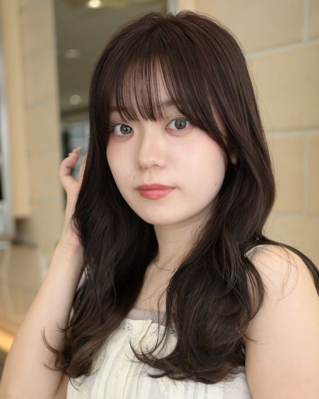 ヘアカラーは8レベルのブラウンをチョイス。シンプルなブラウンにアッシュのアクセントを加え、透明感とこなれ感を出します。
