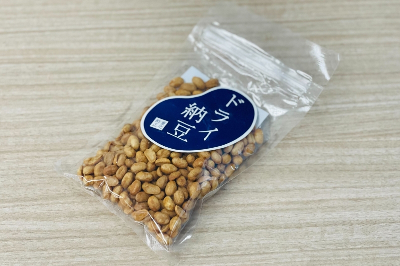梅味のほか、しょう油味も。しょう油味はより豆本来のコクと風味を楽しめる気がします。【ドライ納豆(しょうゆ味)¥680】