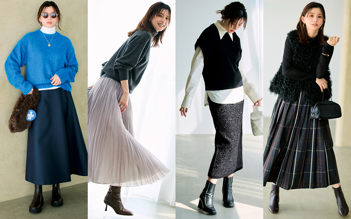 2025年Oggi11月号「ニュースなスカート×ショートブーツ 今年の傾向」より