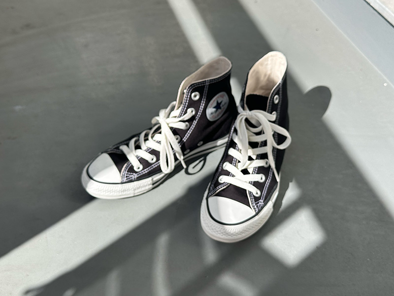 というわけで早速手に入れました。ハイカットの「ALL STAR」。今までもローカット、ハイカット共に履いてきましたが、少々重くて足が疲れる…というのが正直なところでした。それもあって、ここのところちょっとだけ疎遠になっていました。