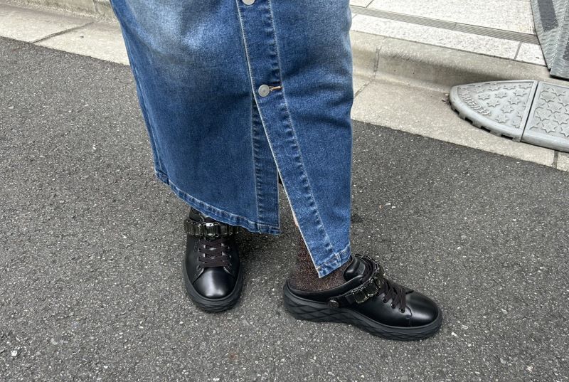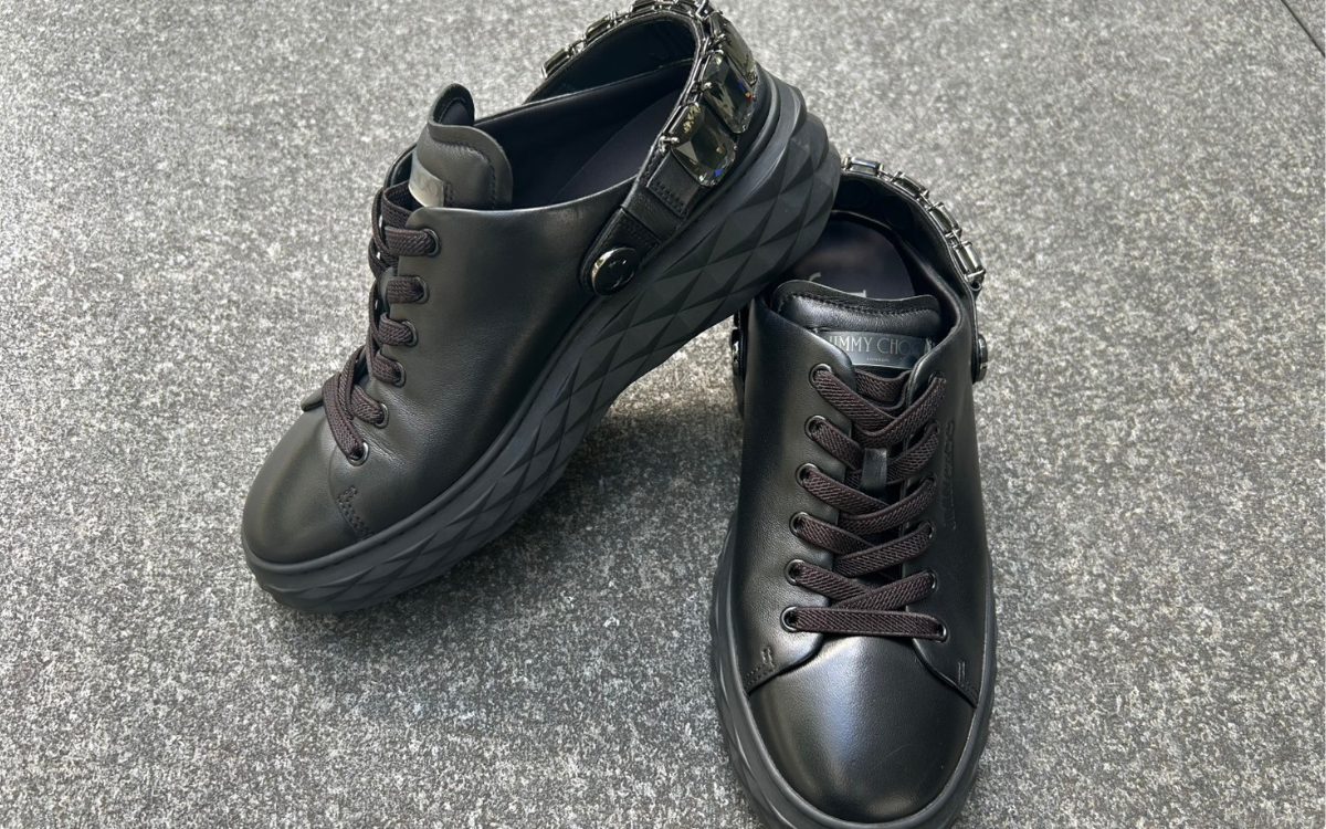 スニーカーは断然白より黒派の私ですが、これまで使用感が出やすい「靴」に憧れブランドを選ぶのは、少し勇気が必要なので避けていました。でも、28歳、大人の女性として〝そろそろ1足ぐらい挑戦してみたい〟と思い立ち、ついに憧れブランドスニーカーを購入してしまいました!それがこちら、JIMMY CHOOのブラックレザースニーカー「ダイヤモンド スリング」。