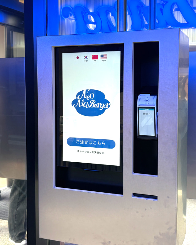 注文はセルフタッチパネル式、支払いはキャッシュレスオンリー。効率的な仕組みでありながら、手作りの温もりが感じられる〝ちょうどいい距離感〟が心地よい雰囲気です。ステンレスカウンターの向こうでは、バンズやパティを焼き、ソースを温める音と香りが漂います。〝ファストフード〟でありながら、作る過程をオープンに見せることで、安心感と高揚感を同時に感じることができます。