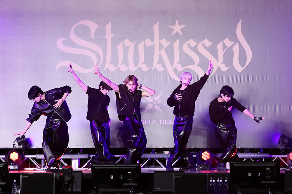 「Can’t Stop」を披露し、最後はステージの端から端まで「ありがとう」「大好き」「愛してるMOAちゃん〜」と何度も繰り返しながら手を振ったりハートをしたり、投げキスをしたりとMOAへの愛と感謝を伝えるメンバーの皆さん。TOMORROW X TOGETHERとMOAの愛情が目一杯交差し、幸せで満たされたショーケースが幕は閉じました。