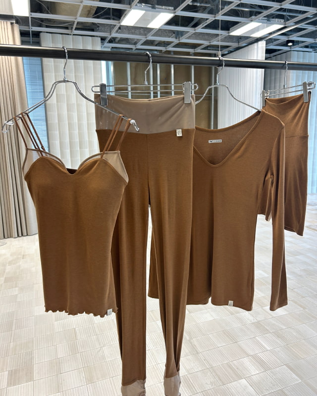 今回のコラボレーションは、あえて魅せるインナーシリーズを全7型展開。ファッションとしても成立する美しいシルエットで「美しく、温かく、心地よい」を叶えてくれるインナーだそう。
