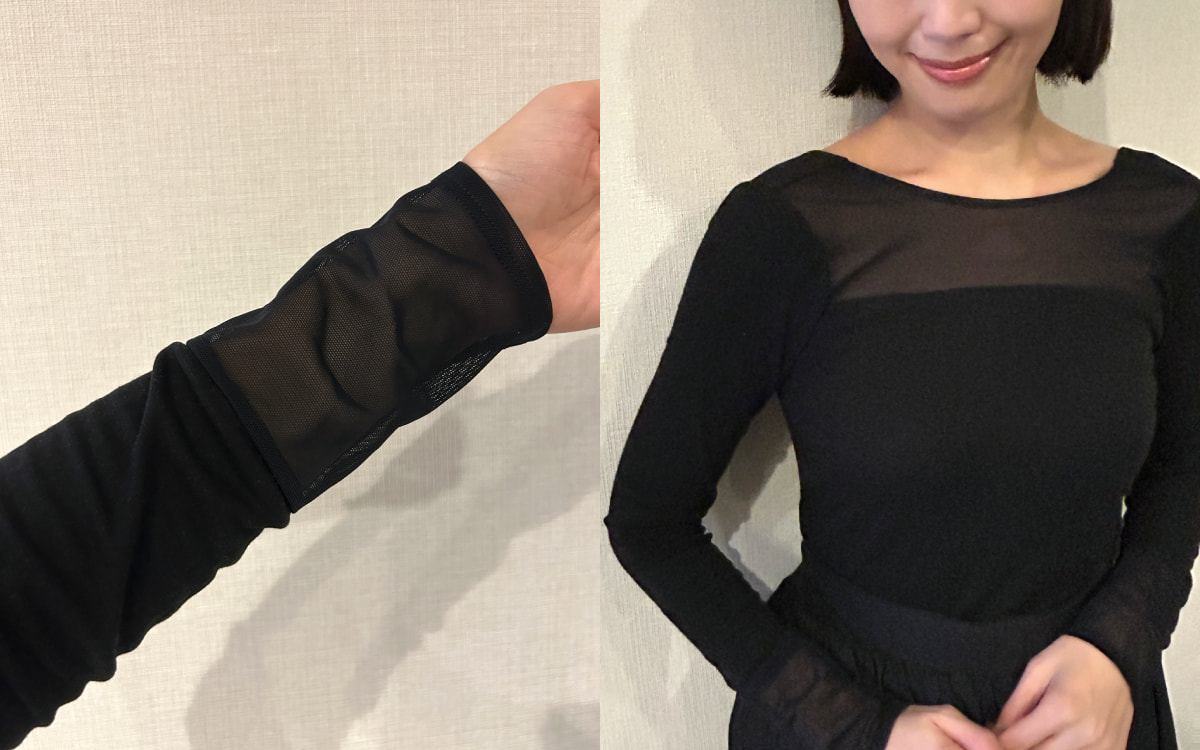 気に入ってブラックを購入してみました! デコルテ部分と袖口のシアーがとってもおしゃれ。