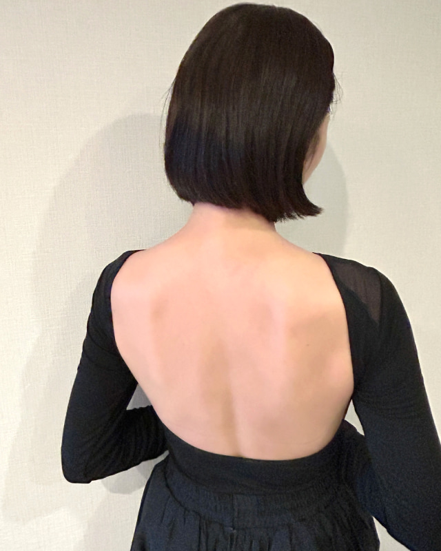 私が気になったのが、大胆な肌見せがかなうカップ付き長袖インナー。背中を広く開けたデザインなので、バックオープンのトップスやドレスの時にもぴったりです。