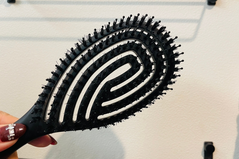 ブラシのベース部分にしっかり通気穴があいているので、ドライヤーの風が髪の内側までスッと抜けるんです。
