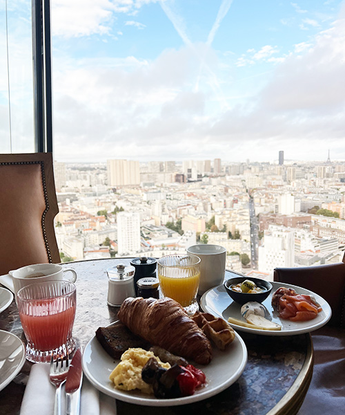 TOO Hotelではとびきり美しいスカイビュー、夜景、グルメ、アーバンライフを楽しみました。パリは高層ビルが限られたエリアにしかないので、このような景色はとてもドラマティックで素敵な非日常を味わいました。