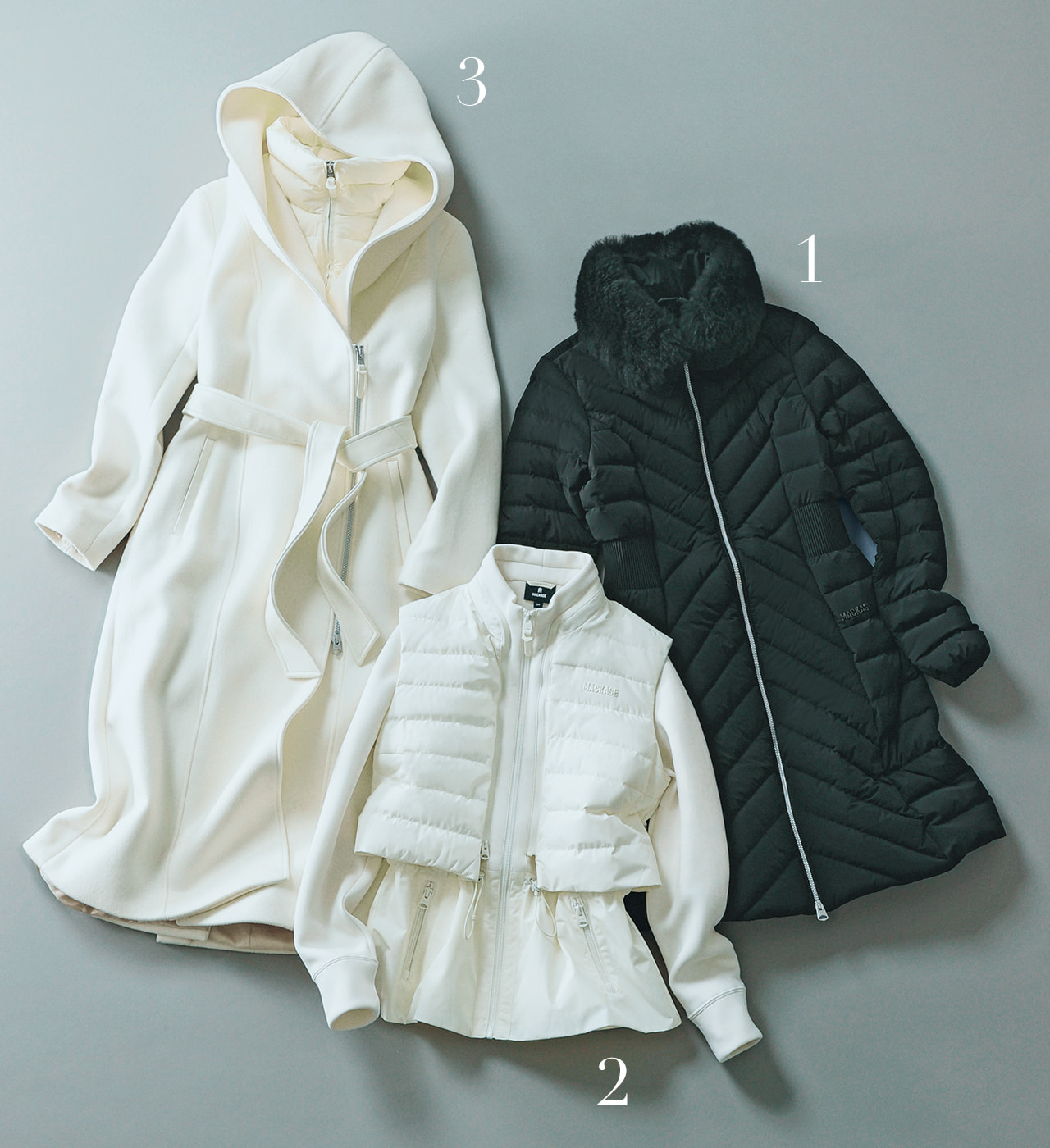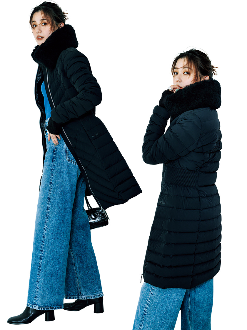 ブランドの定番でもあるマルチウェイストレッチダウンの今季の新作。取り外し可能なシープスキンファーはウエスト絞りのダウンに合わせることで、エレガントさがUP。