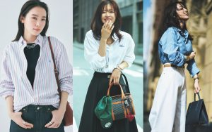 視線を上に導くストライプにスタイルアップ効果があるのはよく知られるところ。スクールガール風になりすぎないように、ほどよくゆとりのあるシルエットを選ぶのが大人の余裕!