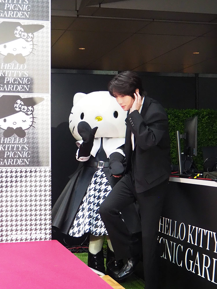 優しさに包まれて、一緒に過ごす仲間や家族ともっと仲良くなれるピクニックライクなひとときを届けるべく作られた「HELLO KITTY’S PICNIC GARDEN」にちなんでに誰とピクニックに行きたいかと問いかけられると「(日本語で)やっぱり、僕の(チームの)メンバーたちです。最近本当に忙しいからメンバーと一緒に公園に行って休みたいです」と答え、「どんなお話をしたいですか」と聞かれると「(日本語で)楽しく話をしたいし、おいしいものを食べたいです」と笑顔をのぞかせました。