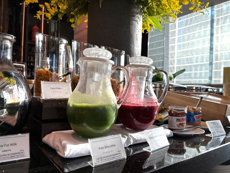 こういったスムージー、普段だと毎日自分のために作るのは面倒なので… 贅沢ですよね^^ ワッフルや美味しいパンもたくさんありましたが、嬉しかったのが和食もしっかり用意されていたこと。豚汁やお茶漬けなど、和食好きには嬉しいメニューも豊富に揃っています。