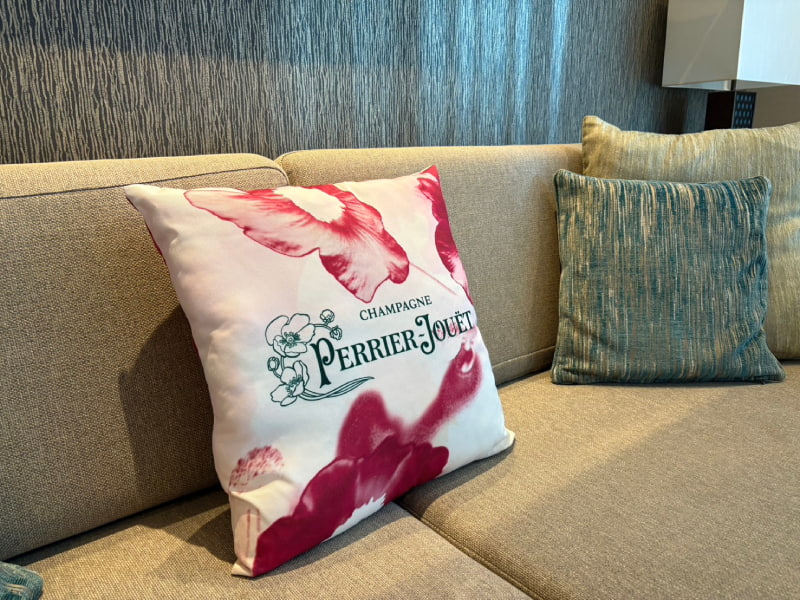 ゆったりとしたソファには、今回のコラボ「ペリエ ジュエ」のクッションが…♡