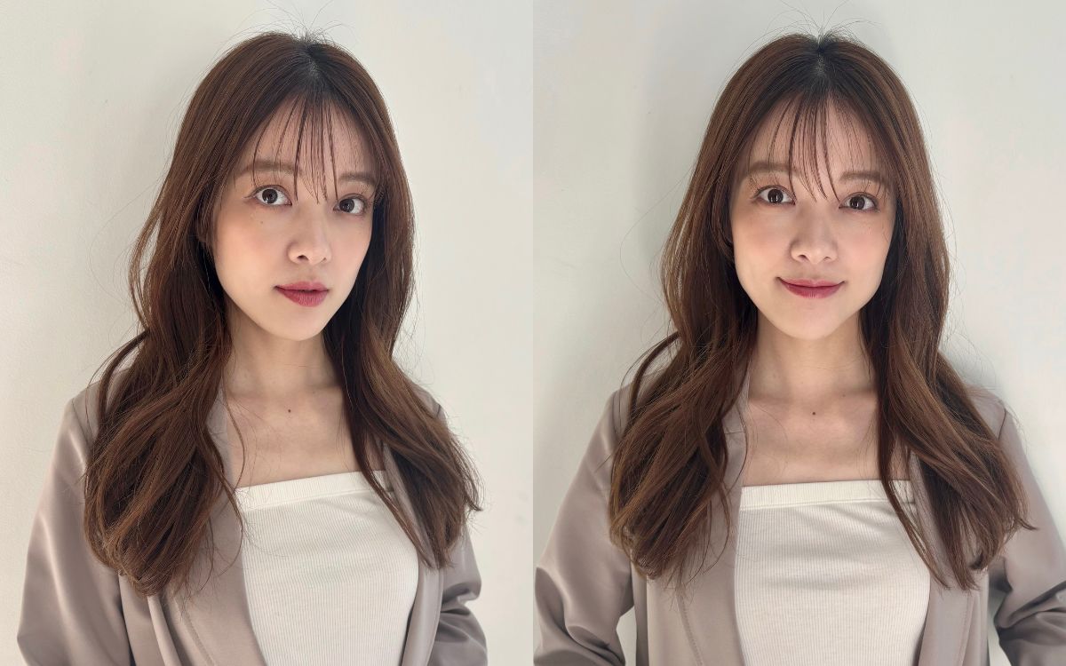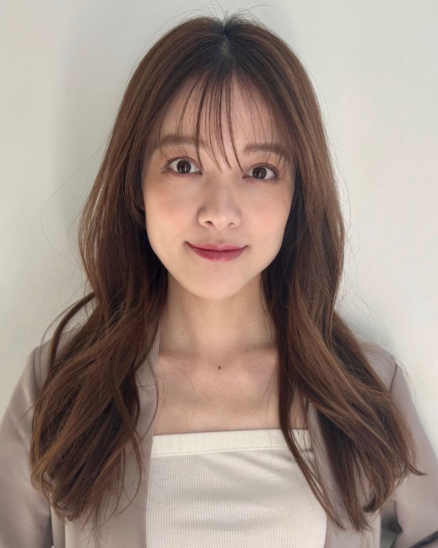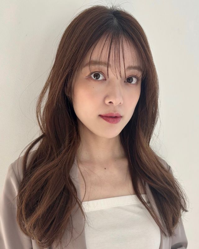 ヘアカラーは8レベルのブラウンベージュ。ブラウンの温かさとベージュの透明感を両立し、柔らかい印象を与えます。暖色寄りなので秋冬カラーにもぴったりです。