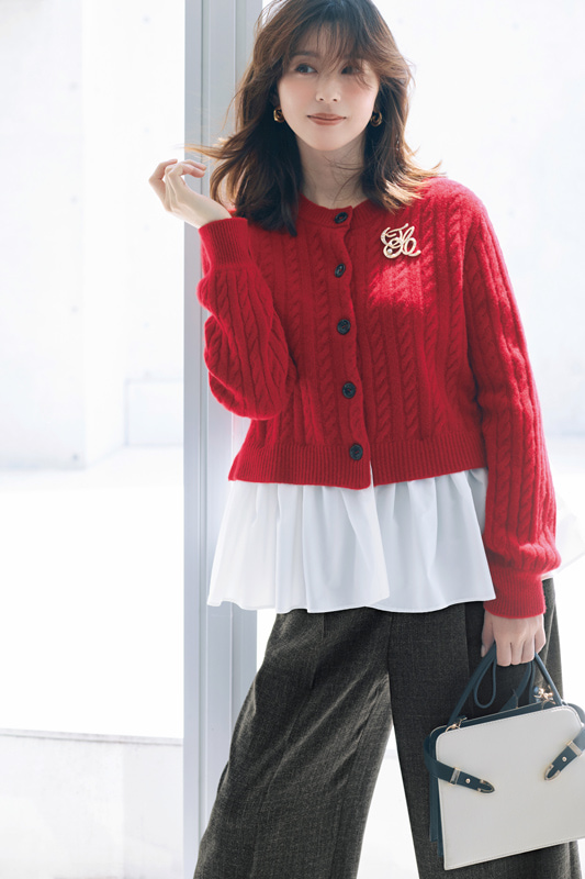 カーディガン¥19,800・パンツ¥20,900・バッグ¥20,900・ブローチ¥4,290(ジャスグリッティー) その他/スタイリスト私物