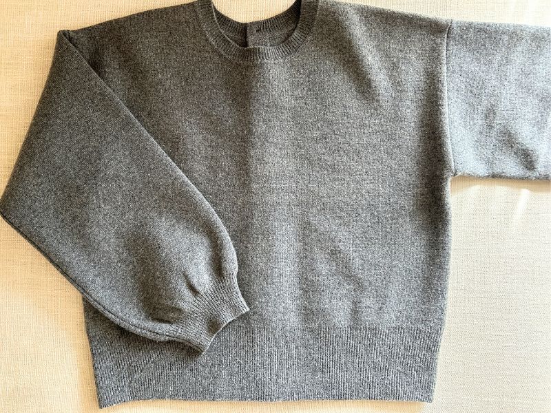 上半身の肉感を拾わないワイドな身幅と地厚な素材。袖もゆったり設計で、気になる肩回り&二の腕もいい感じにカバー。丈も長すぎず短すぎず、裾のリブもピタピタしていないので腰回りゆったりと包み込んでくれます。ぎゅっと目の詰まったニットはきれいめに見えて、さらに毛玉もできにくそう(カシミア3パーセント配合でした♡)。