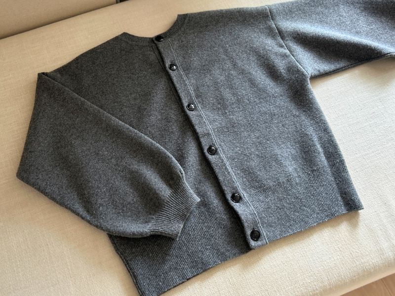 揺るぎない骨格ストレート体型ゆえ、カーディガンという存在は「苦手」な部類です。特に、ハイゲージのカーディガンなんて着てしまうと、立派な肩幅、上半身の肉感が拾われて、鏡を見るたびにため息が出てしまうくらい、見た目+4キロ(自分比)、というところでしょうか。