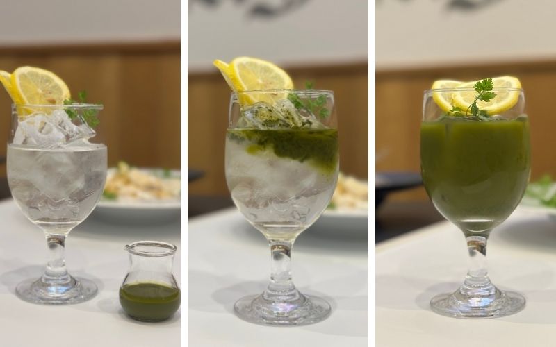 抹茶を加えて味わうレモネード。抹茶を入れると二層のドリンクになり見た目も楽しめる一杯。味わう時はよく混ぜて楽しんで。