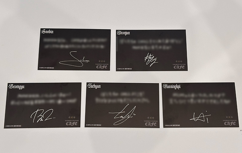 ▲カフェでフード、またはデザートメニューを注文すると希望メンバーの「メッセージカード(全5種)」を1品につき1枚プレゼント。