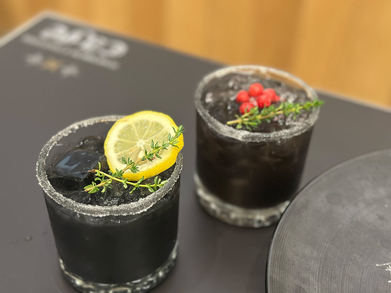 竹炭を加えた、すっきりとしたレモンソーダ(SOOBIN)とカシス風味のアイスティー(YEONJUN)。