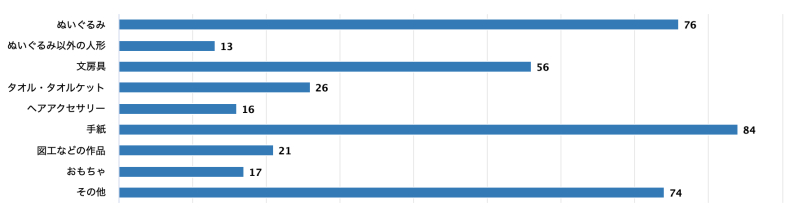 今回の結果をグラフで見てみると「その他」が2位に。具体的なアイテムでは、3位以下では4位に「タオル・タオルケット」5位に「図工などの作品」が並びました。