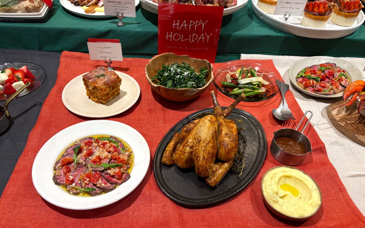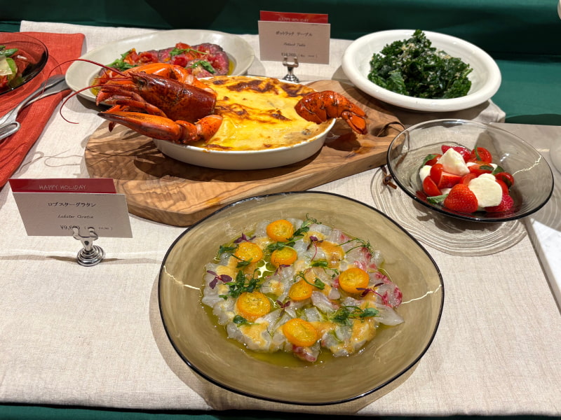 友人たちとのホームパーティーにぴったりなのが「ポットラック テーブル」。去年も〝取り分けやすくて華やか〟と好評だったセットが、今年はよりバランスよく味わいもリッチに。主役は、ロブスターを丸ごと使った思わず写真を撮りたくなる「グラタン」。ホワイトソースとチーズソースを重ね、ブランデーで香りを添えた贅沢な味わい。クリーミーな口当たりの中に、ロブスターの旨みがぎゅっと詰まっています。